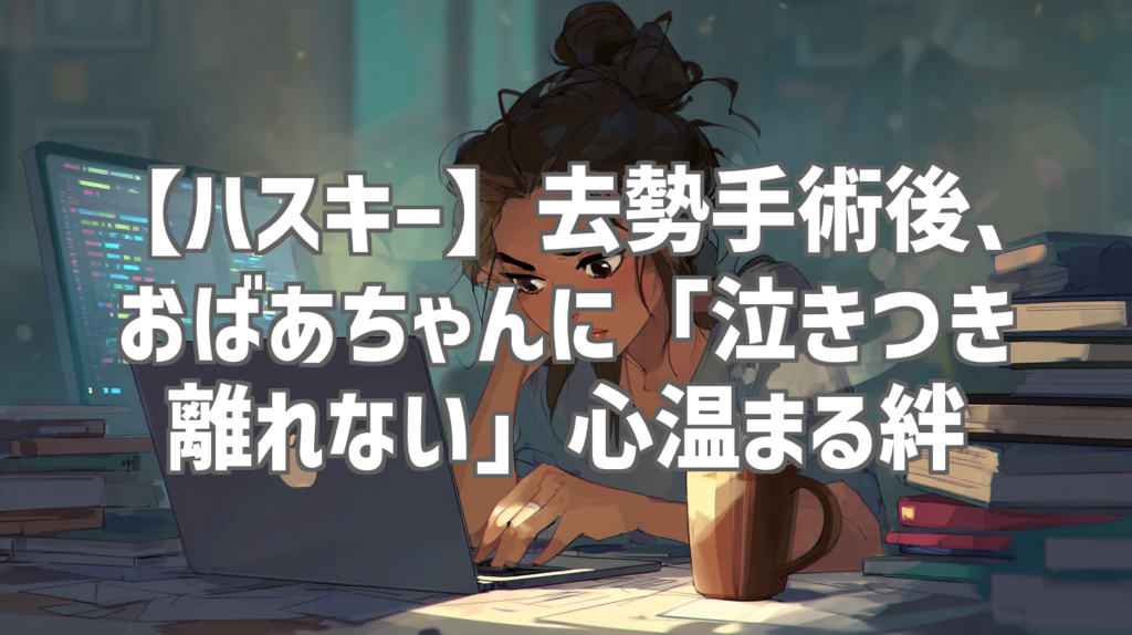 【ハスキー】去勢手術後、おばあちゃんに「泣きつき離れない」心温まる絆 どうも!YouTubeレビューブロガーの〇〇です!今回は、思わず涙腺が緩んでしまうような、とび… -