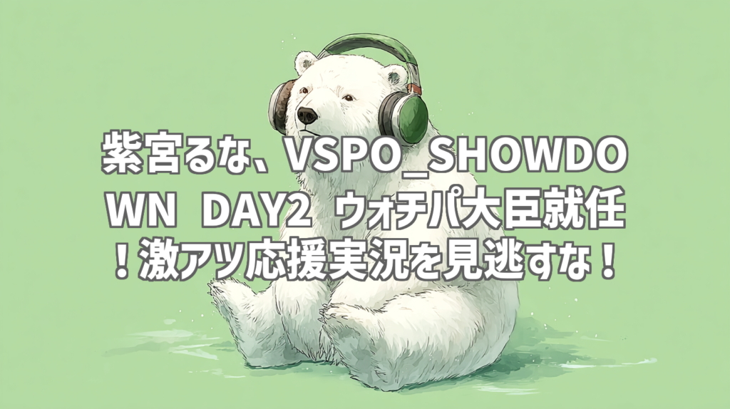 紫宮るな、VSPO_SHOWDOWN DAY2 ウォチパ大臣就任!激アツ応援実況を見逃すな! ぶいすぽっ!所属の人気VTuber紫宮るなさんが、VSPO_SHOWDOWN DAY2のウォチパ大臣に就任… -