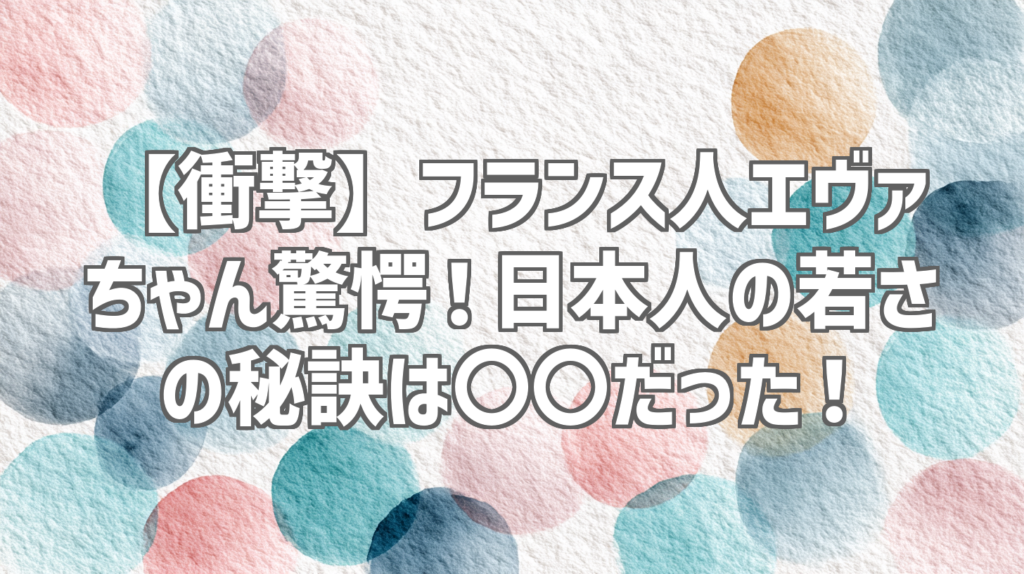 【衝撃】フランス人エヴァちゃん驚愕!日本人の若さの秘訣は〇〇だった!