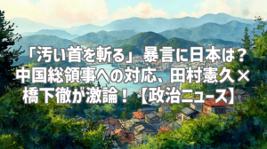 中国の大阪総領事がSNSに投稿したとされる、あまりにも過激な発言。これが外交問題としてどう展開するのか、そして日本政府はどのような対応を迫られるのか。自民党の重鎮である田村憲久氏と、元大阪市長で常に鋭い視点を持つ橋下徹氏が、この問題に対して真っ向から激論を交わすという、まさに「必見」の内容です。私自身、この問題について深く考えるきっかけになりましたし、皆さんもこの動画を見れば、きっと日本の国際的な立ち位置について、新たな視点が得られるはずです。