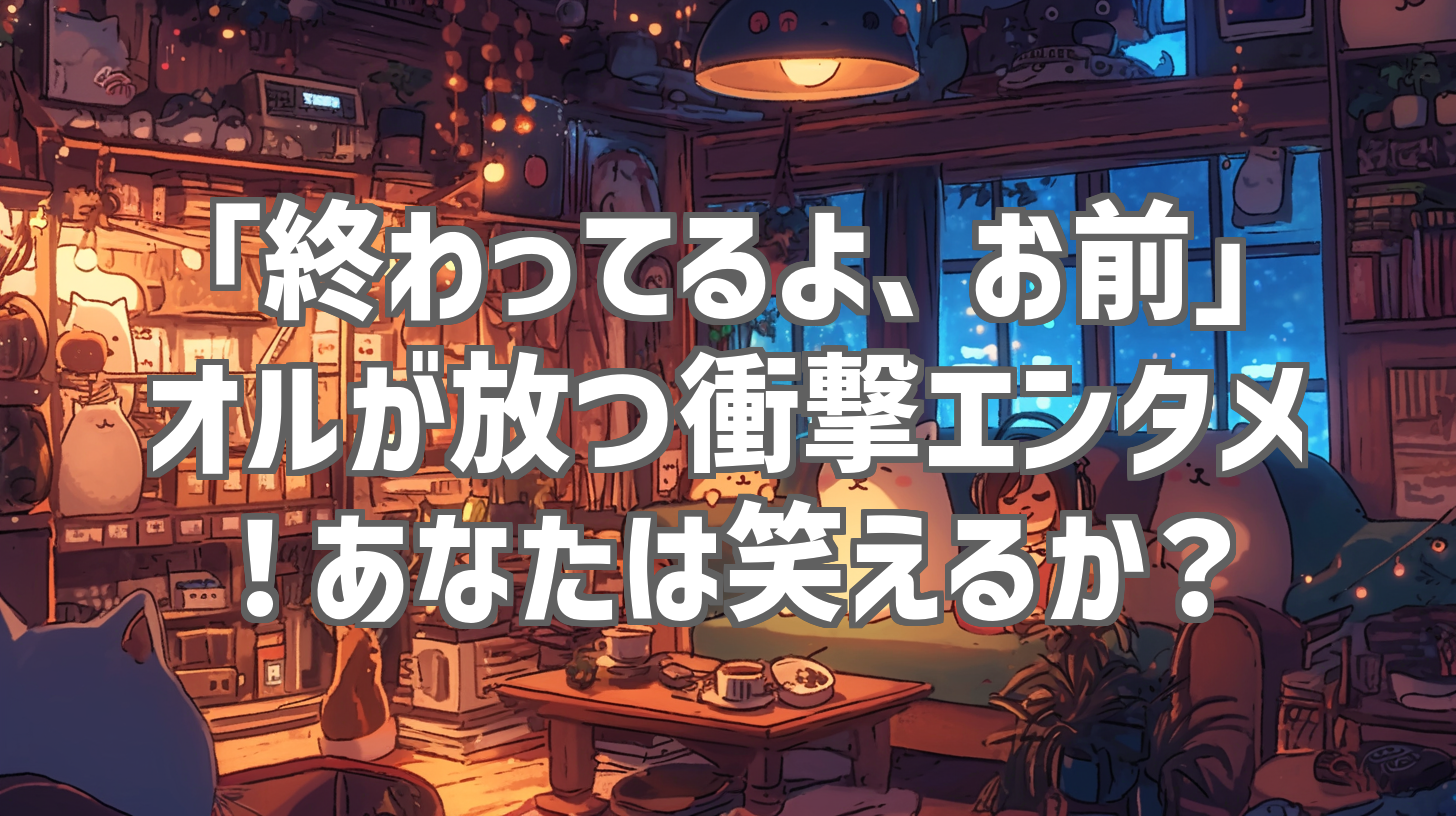もしあなたが今日、少しでも笑いたい気分なら、あるいは「わかる〜!」と共感したい気分なら、迷わずオルさんの「終わってるよ、お前」をもう一度、いや、何度でも見てみてください。きっと、彼の独特な世界観と、あのパンチの効いたセリフが、あなたの心を掴んで離さないはずです。さあ、あなたも「終わってるよ、お前」の世界へ飛び込んでみませんか?