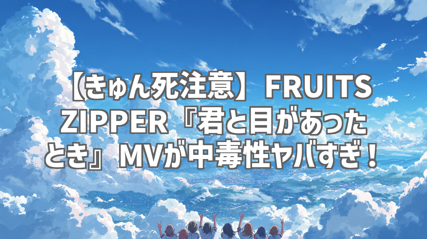 FRUITS ZIPPER、通称「FRUITS ZIPPER」の新曲『君と目があったとき』のMVが公開されてからというもの、私の脳内は完全に”きゅん”で埋め尽くされています! 一度聴いたら最後、エンドレスリピート不可避。耳に残るメロディーと、メンバーの可愛すぎる表情に、完全に心を奪われてしまいました。これはもう、全国民に共有したいレベル! 今回は、そんな中毒性MAXな『君と目があったとき』のMVを、徹底的にレビューしていきます。まだ見ていない人は、この記事を読んだらすぐに再生ボタンをポチってくださいね!