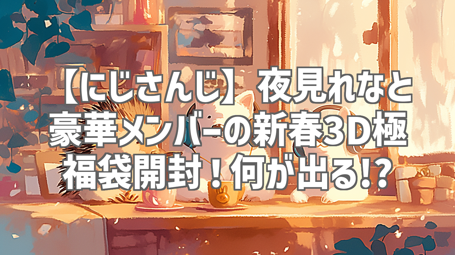| 動画タイトル | 【 #新春3D極福袋開封 】極福袋開封2026!! 今年も開けてくぞぉ!!!【 にじさんじ/夜見れな/加賀美ハヤト/花畑チャイカ/社築/舞元啓介/フレン・E・ルスタリオ/榊ネス/北見遊征/魁星 】 |
