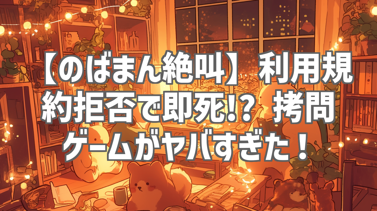 のばまんゲームスの最新動画「利用規約に同意しないと遊べない拷問をやらされるゲーム」が公開され、早速視聴しました! 今回は、タイトルからして既にヤバそうな雰囲気漂うゲーム実況。のばまん氏の絶叫と奇想天外なゲーム内容に、笑いと恐怖が止まりませんでした! 利用規約という身近なテーマを、ここまでエグく、そして面白く料理するとは…! 早速、動画の詳しい内容をレビューしていきます!