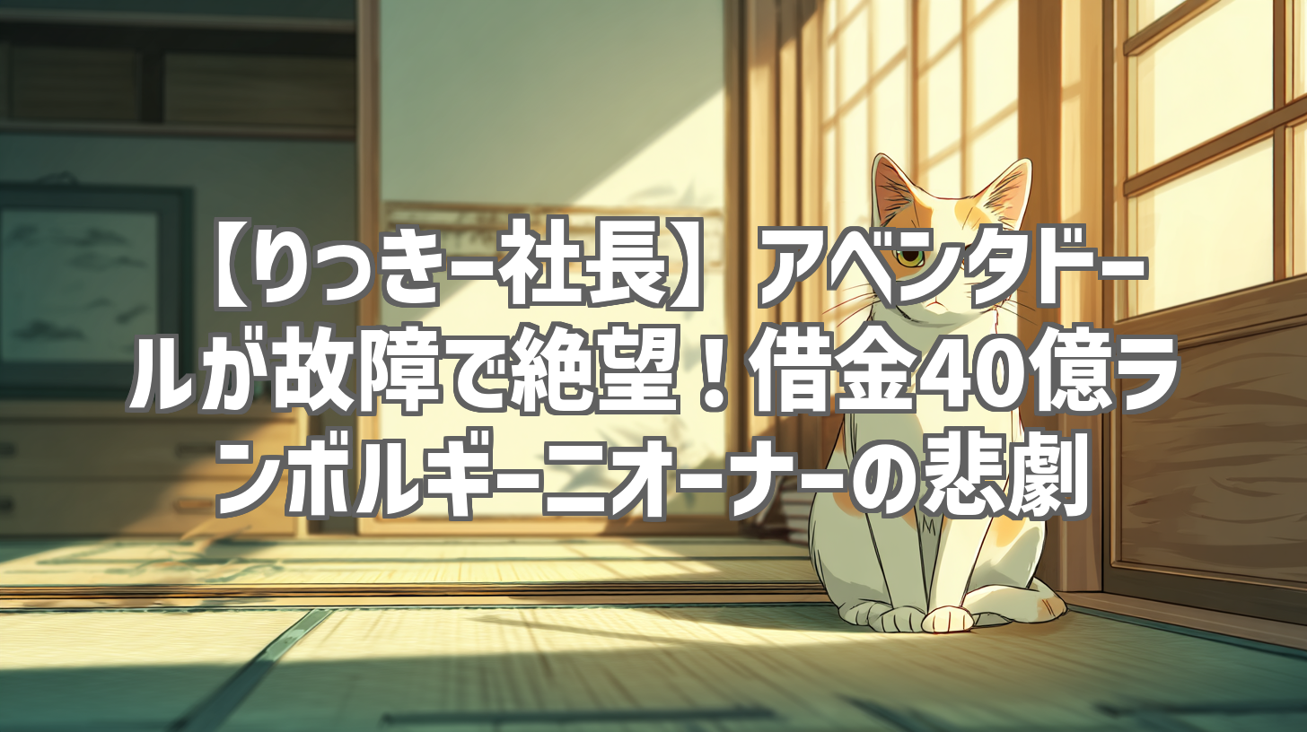 やっほー、みんな!今回のレビューは、YouTubeで常に話題をかっさらっている「りっきー社長」の最新動画。もうね、タイトルを見た瞬間から心臓がキュッとなったんだけど、その内容も想像を絶するものでした。借金40億円を抱えながらもランボルギーニ・アベンタドールを愛するりっきー社長に、まさかの悲劇が襲いかかったんです。彼の愛車、アベンタドールが故障!しかも「どこもいけなくなった」という絶望的な状況。スーパーカーオーナーの華やかな日常とは裏腹の、あまりにもリアルで過酷な現実が描かれたこの動画、一体何があったのか、深掘りしていきましょう!