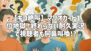 キヨとP-Pのコンビが、まさかのマリオカート耐久実況に挑戦!「1位を10回取るまで終われない」という過酷なルールのもと、4時間以上にわたる激闘が繰り広げられました。私もリアルタイムで視聴していましたが、終始笑いと絶叫が止まらない、まさに阿鼻叫喚の地獄絵図でした(笑)。今回は、そんな伝説と化した耐久実況の魅力を余すところなくお届けします!