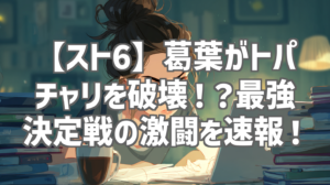 • 「トパチャリを破壊」の意味: 動画タイトルにもなっている「トパチャリ」。これは、スト6の大会シーンにおける特定の状況を指す言葉で、葛葉さんがその状況を打破するシーンが見られるのかにも注目です!