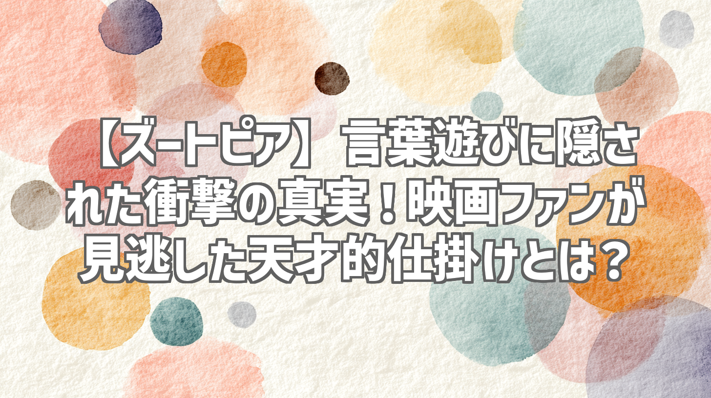 ディズニー映画の中でも、その奥深いテーマ性と魅力的なキャラクターで世界中を魅了し続ける『ズートピア』。何度観ても新しい発見があると言われるこの名作ですが、まさかここまで緻密な仕掛けが隠されていたとは!今回ご紹介するのは、YouTubeチャンネル「まっしゅムービー」さんが公開された、たった59秒の動画。この短い時間で、私が長年見過ごしてきた『ズートピア』の、ある天才的な「言葉遊び」の真実を突きつけられ、思わず「まじか!」と声が出ました。