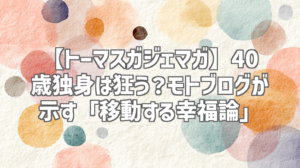 「40歳独身狂う説」という強烈なフックから、最終的には「移動する幸福論」へと着地するストーリーテリングは、まさにトーマスガジェマガさんの真骨頂。彼の言葉は、私たちの日常に新たな視点と活力を与えてくれること間違いなしです。