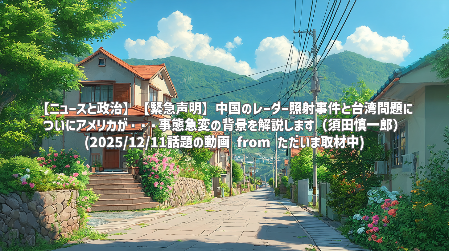 【ニュースと政治】【緊急声明】中国のレーダー照射事件と台湾問題についにアメリカが・・・事態急変の背景を解説します(須田慎一郎) (2025/12/11話題の動画 from ただいま取材中)