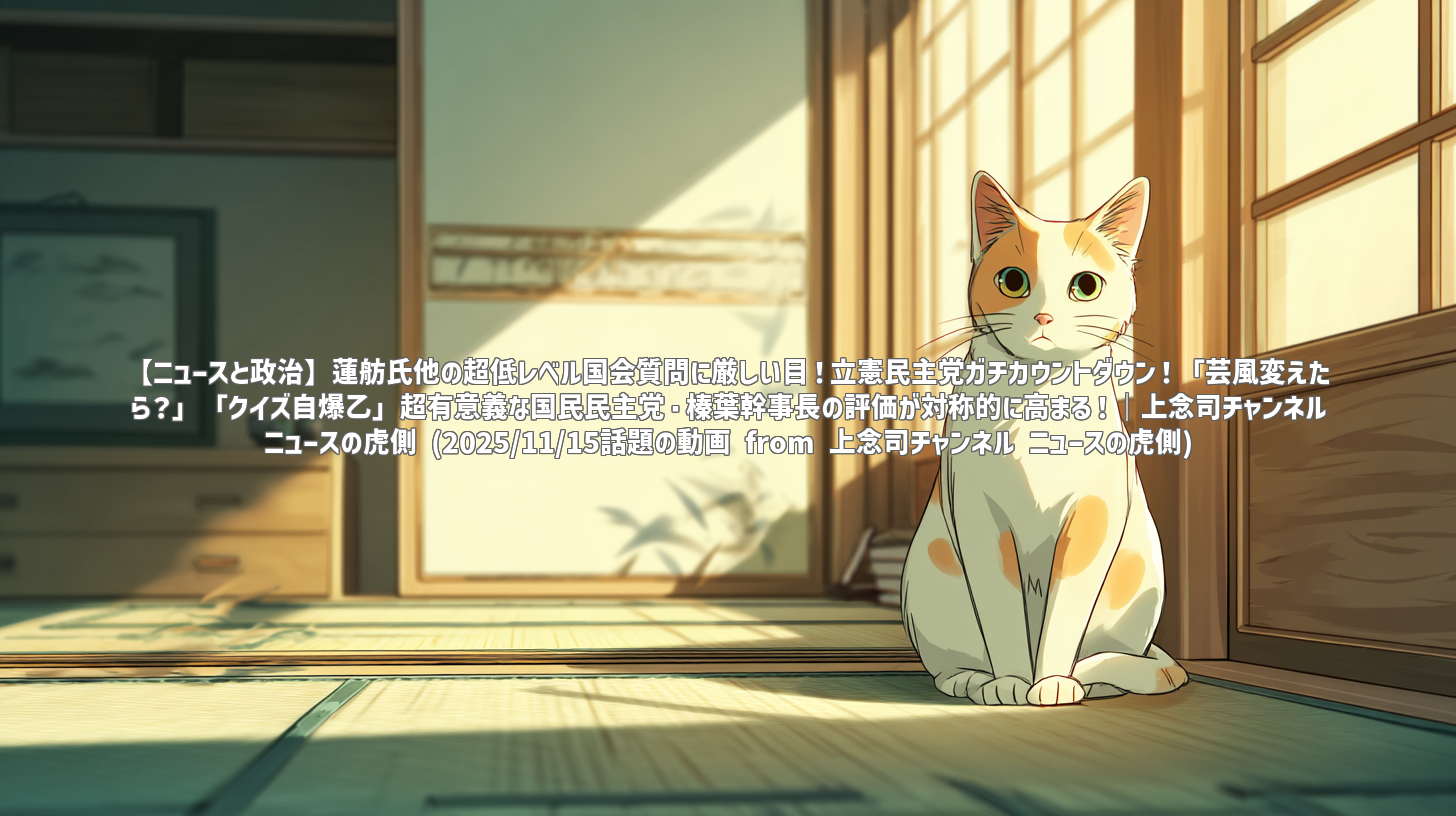 【ニュースと政治】蓮舫氏他の超低レベル国会質問に厳しい目!立憲民主党ガチカウントダウン!「芸風変えたら?」「クイズ自爆乙」超有意義な国民民主党・榛葉幹事長の評価が対称的に高まる!|上念司チャンネル ニュースの虎側 (2025/11/15話題の動画 from 上念司チャンネル ニュースの虎側)