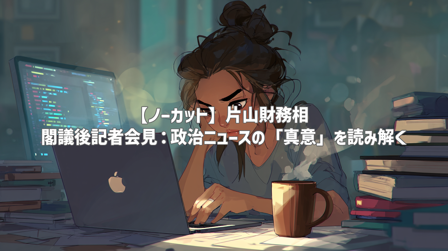 今回ご紹介するのは、まさにその「真意」に迫るための貴重な動画、「【ノーカット】閣議後 片山財務相 記者会見 ── 政治ニュース(日テレNEWS LIVE)」です。この動画は、特定の政治家の発言だけでなく、記者の質問の意図、そしてその場の空気感までもが伝わるノーカット形式で配信されており、政治ニュースの奥深さを知る上で非常に注目に値します。本記事では、この動画を深く掘り下げ、片山財務相の発言の背景にある政策思想や、日テレNEWSが提供するノーカットコンテンツの価値について、詳細な分析をお届けします。この記事を読み終える頃には、あなたは単なるニュースの受け手ではなく、政治の動きを多角的に捉え、自らの視点で分析する力を得ていることでしょう。
