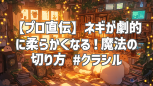 | 動画タイトル | 【プロはこうする!ネギを柔らかく切る方法】|#クラシル #shorts |