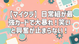 今回の日常組の動画「【マインクラフト】とにかく最強のカードを集めて戦ってください【日常組】」は、笑いあり、興奮あり、そして感動ありの、最高のエンターテイメント作品でした!最強カードを駆使した戦略、メンバー同士の掛け合い、そして予想外の展開。どれをとっても見逃せない要素ばかりです。まだ視聴していない方は、ぜひ一度ご覧ください!きっとあなたも、日常組の虜になること間違いなし!高評価とチャンネル登録も忘れずに!