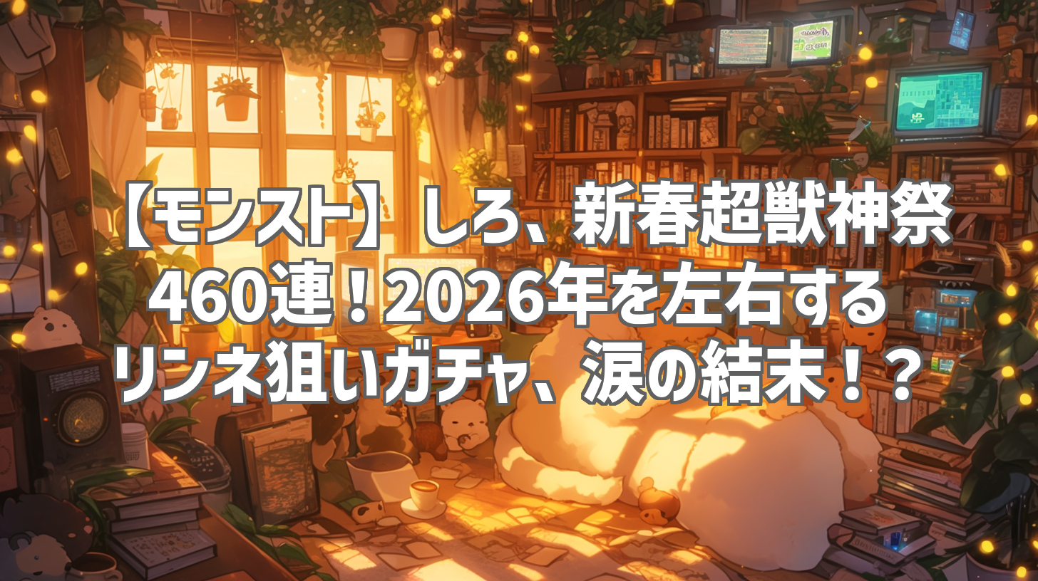 新年早々、モンストユーザーの間で話題沸騰中の動画がこちら!人気YouTuber「しろ」さんが、新春超獣神祭に挑み、新限定キャラ「リンネ」を狙ってなんと460連もガチャを回すという、まさに破格の企画です。2026年の運勢を占うとも言えるこのガチャ、果たして「しろ」さんは爆死してしまうのか、それとも大勝利を掴むのか…!? 私もリアルタイムで固唾を飲んで見守ってしまいました。その興奮と結果を、この記事で詳しくレビューしていきます!