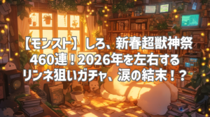 新年早々、モンストユーザーの間で話題沸騰中の動画がこちら!人気YouTuber「しろ」さんが、新春超獣神祭に挑み、新限定キャラ「リンネ」を狙ってなんと460連もガチャを回すという、まさに破格の企画です。2026年の運勢を占うとも言えるこのガチャ、果たして「しろ」さんは爆死してしまうのか、それとも大勝利を掴むのか…!? 私もリアルタイムで固唾を飲んで見守ってしまいました。その興奮と結果を、この記事で詳しくレビューしていきます!