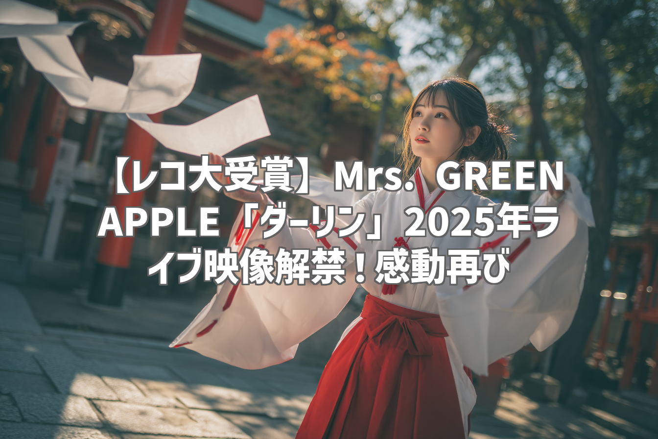 先日、第67回日本レコード大賞を受賞したMrs. GREEN APPLEの「ダーリン」。その感動冷めやらぬ中、2025年のドームツアー”BABEL no TOH”からのライブ映像が、なんとフル尺で公開されました!もう、公開された瞬間から鳥肌が止まらなかったです。あの日の興奮と感動が鮮明に蘇ってきて、何度もリピートしてしまいました。今回は、そんな話題沸騰中のライブ映像「Mrs. GREEN APPLE – ダーリン(第67回 輝く!日本レコード大賞受賞曲)【LIVE “BABEL no TOH” 2025 December Edit】」の見どころを、熱量MAXでお届けします! ミセスファンはもちろん、まだ聴いたことのない人も、絶対に引き込まれること間違いなし!
