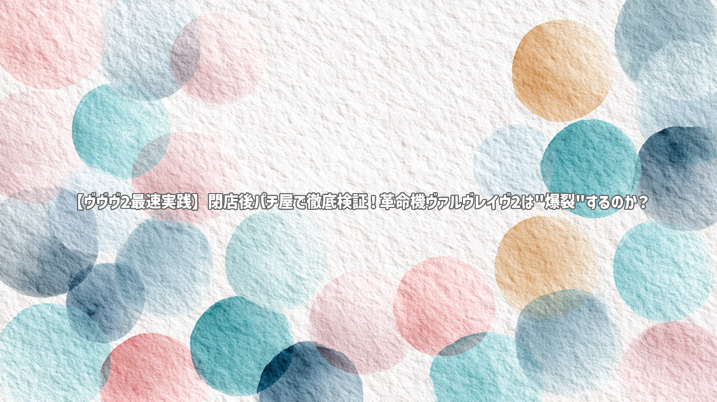 パチスロファンにとって、新台の登場は常に胸躍るイベントです。特に、前作で数々の伝説的な「万枚報告」を叩き出し、その爆裂性能で一世を風靡した「革命機ヴァルヴレイヴ」の後継機となれば、期待値は天井知らずに跳ね上がります。今回ご紹介するのは、そんな期待の最新台「革命機ヴァルヴレイヴ2(ヴヴヴ2)」を、なんと閉店後のパチンコ店で最速実践する、まさに夢のような企画動画です。