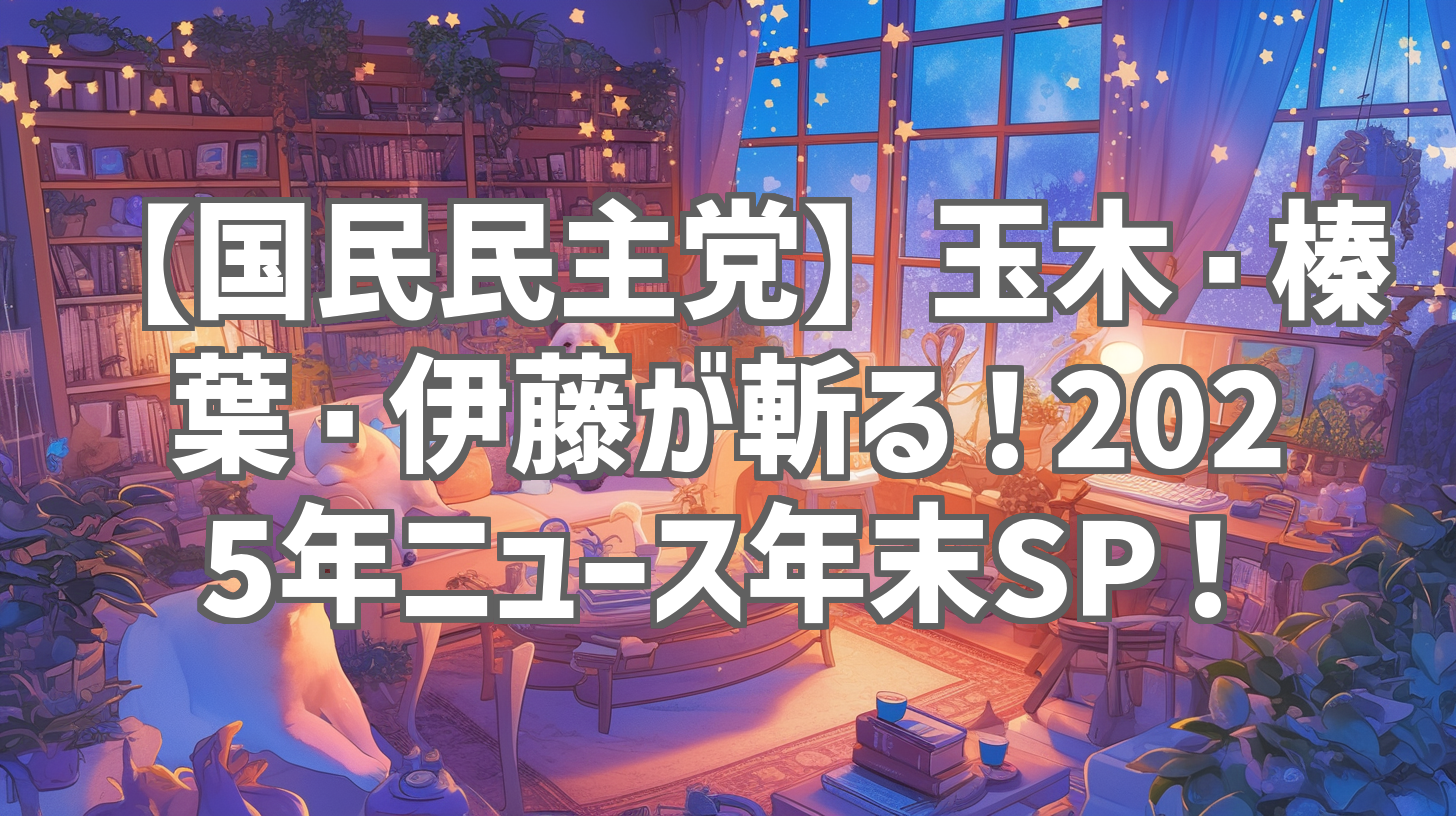 | 動画タイトル | Go!Go!こくみんライブ~年末SP! 玉木・榛葉・伊藤が厳選!国民民主党ニュース2025~#玉木雄一郎 ・#榛葉賀津也 ・#伊藤たかえ ~ |