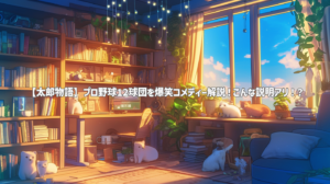 この記事では、そんな話題の動画「プロ野球12球団の説明」の魅力と、それを生み出したユニークなチャンネル「太郎物語」の深掘りを行います。プロ野球ファンはもちろんのこと、普段野球を見ない方でも思わずクスッと笑ってしまうこと間違いなし。この記事を読み終える頃には、あなたも「太郎物語」ワールドの虜になっているかもしれません。さあ、一緒にこの爆笑の旅に出かけましょう!