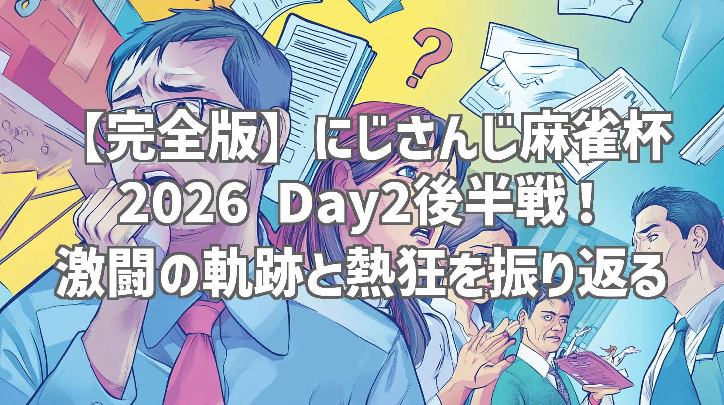 年末年始の風物詩とも言える「にじさんじ麻雀杯」。2026年も熱い戦いが繰り広げられましたね!特にDay2の後半戦は、予選通過をかけたライバーたちのドラマが凝縮された、まさに激戦区。今回は、その模様を7時間37分59秒、余すところなくお届けするアーカイブ動画を徹底的にレビューします! 個人的には、推しのあのライバーの活躍が見れて大興奮!手に汗握る展開の連続で、あっという間に時間が過ぎました。麻雀の知識がなくても楽しめる、エンターテイメント性抜群の動画です。