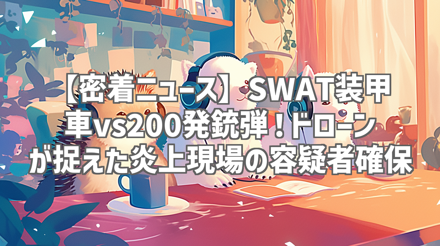 | 動画タイトル | SWAT装甲車とドローン出動!200発の銃弾が飛び交う中、燃え上がった部屋で容疑者確保!【密着記録News】 |