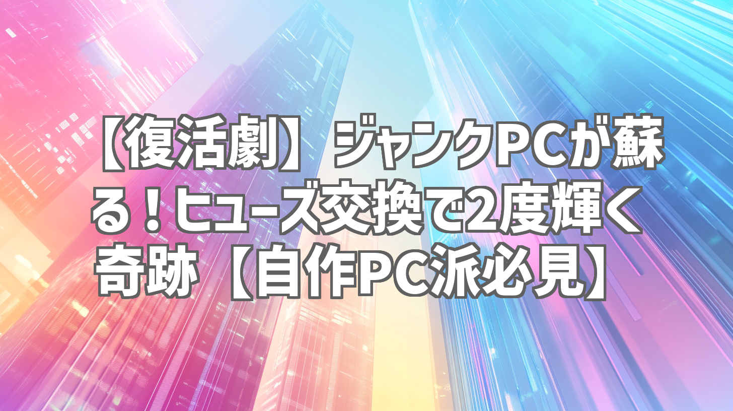 この動画、一言で言うと「ジャンクPCがヒューズ交換だけで復活する奇跡」を描いています。わずか2分44秒の中に、PC修理のロマンと、諦めずに挑戦することの大切さが凝縮されているんです。