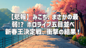 新年早々、ホロライブ全体を巻き込んだ一大イベント「新春🌸ホロライブ五目並べ最強最弱王決定戦🎍」が開催されました!主催は我らがエリート巫女、さくらみこちゃん。総勢20名以上のホロメンが参加し、最強の称号をかけて激戦を繰り広げました。しかし、蓋を開けてみれば、まさかの展開が…。そう、みこちが…最弱王に…!? 長時間配信で見逃した人も、もう一度あの衝撃を味わいたい人も、この記事で詳細をチェックしていきましょう!