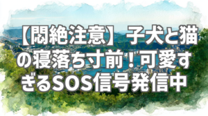 【悶絶注意】子犬と猫の寝落ち寸前!可愛すぎるSOS信号発信中