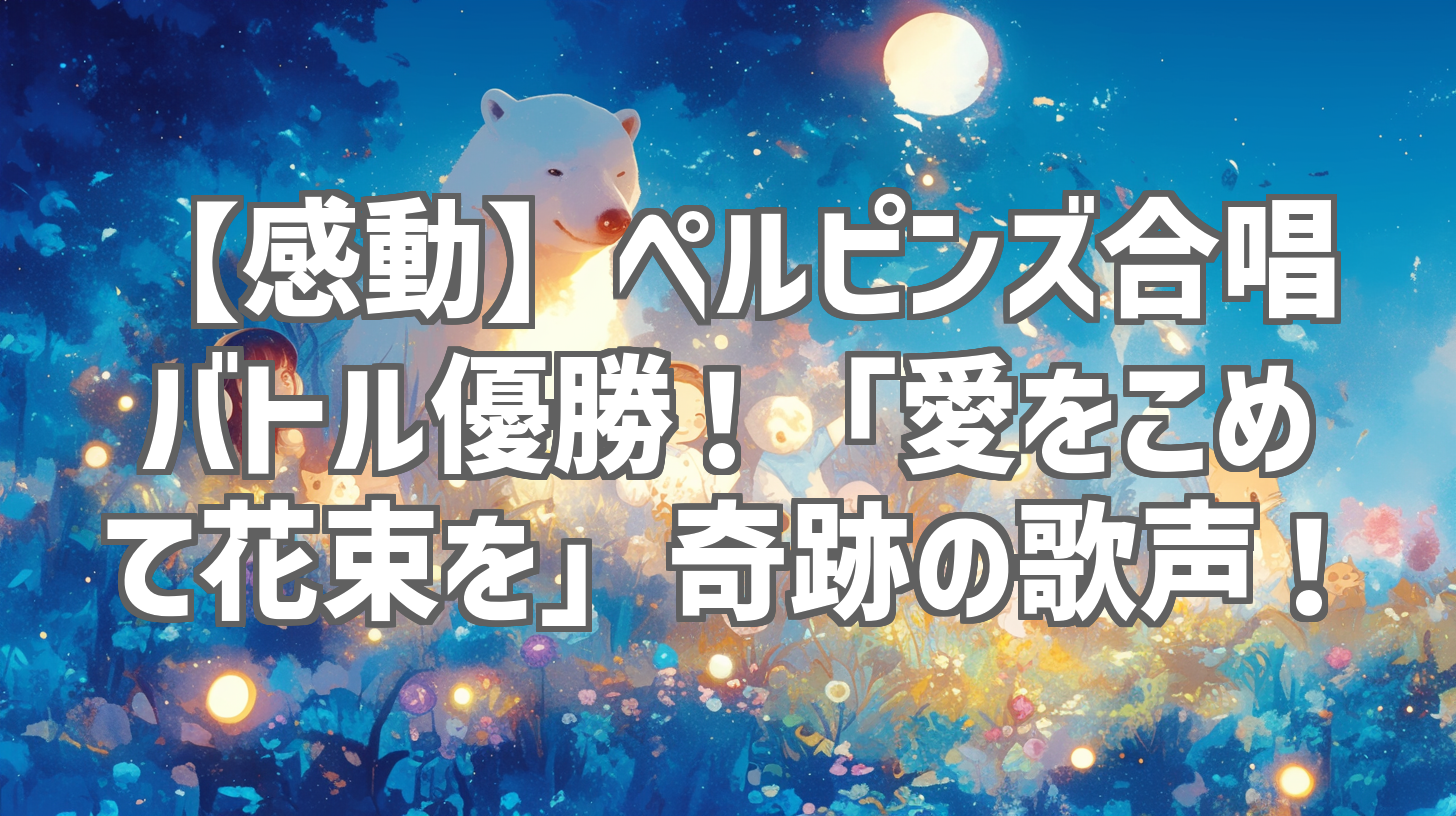 今回の記事では、ペルピンズさんの「愛をこめて花束を」の合唱動画について、その魅力や見どころを徹底的に解説しました。美しいハーモニー、個性豊かなメンバーの歌声、表現力豊かなパフォーマンス、そして感動的な合唱バトル優勝シーン。どれをとっても素晴らしい、まさに奇跡の歌声です。