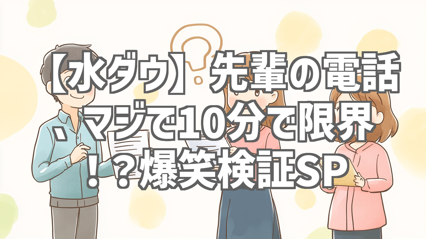 「水曜日のダウンタウン」でおなじみの爆笑検証企画が、YouTubeチャンネル「大爆笑TV」で切り抜き動画として公開され、話題沸騰中です!今回は、誰もが経験したことのあるであろう「先輩からの電話」をテーマに、人間はどこまで耐えられるのか?を検証。たった29秒の動画の中に、水ダウならではのシュールな笑いが凝縮されています。私も思わず笑ってしまいましたが、同時に「わかる…!」と共感してしまう部分も多く、あっという間に見終わってしまいました。この記事では、そんな爆笑必至の動画を徹底的にレビューしていきます!