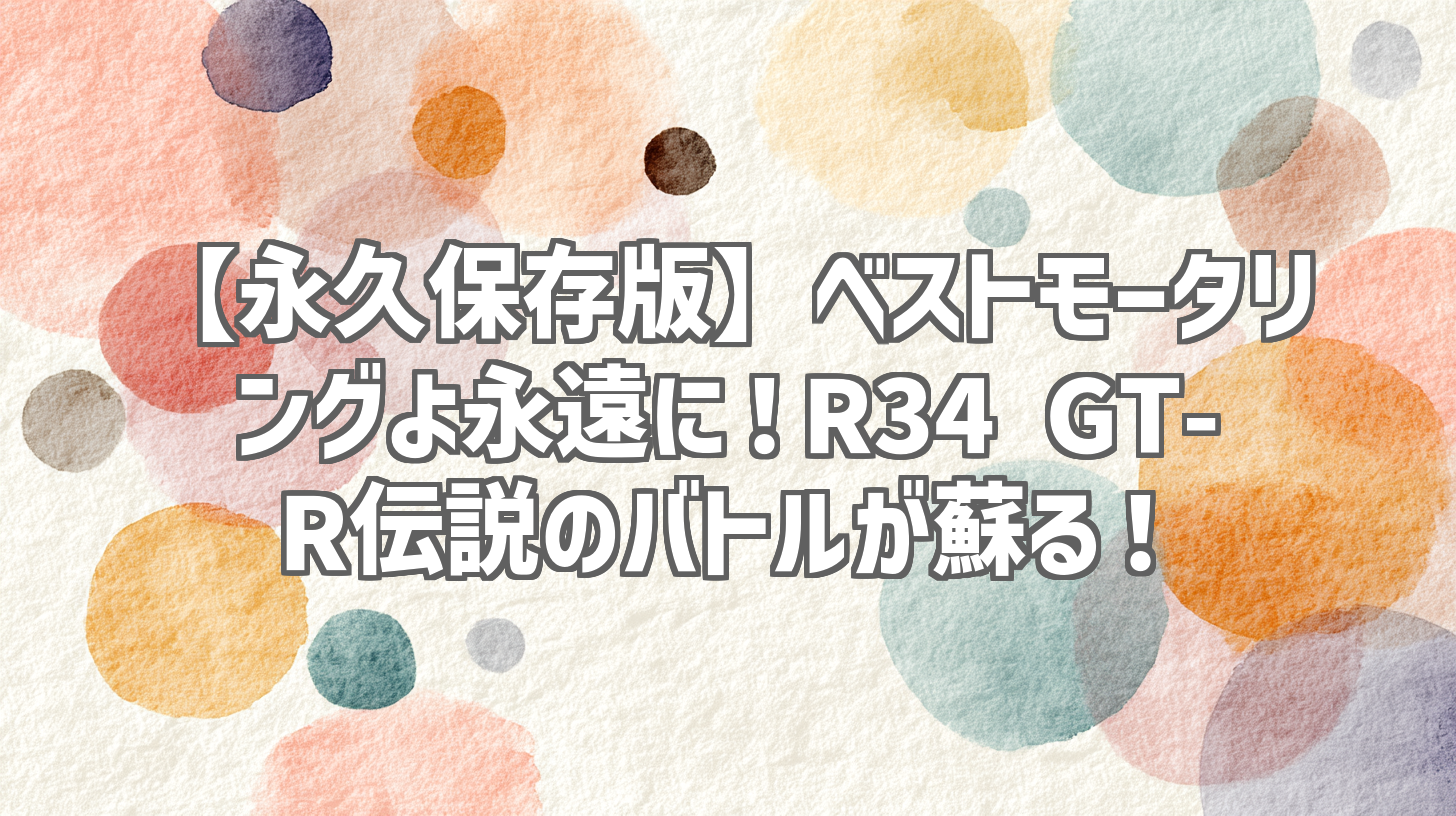 あの伝説の自動車番組「ベストモータリング(通称:ベスモ)」を彷彿とさせる、R34 GT-Rの熱いバトルシーンを凝縮した動画がYouTubeにアップされました! 今回は、YouTubeチャンネル「The R34 GTR」が公開した、わずか51秒のショート動画「Bring back the old battles! Via Best Motoring YT #gtr #nissanskyline #R34gtr #gtrlife #gtrskyline」を徹底レビュー。ベスモ世代はもちろん、R34 GT-Rファンなら絶対に見てほしい、興奮と感動が詰まった映像です。往年の名シーンが鮮やかに蘇り、当時の熱狂を再び味わえること間違いなし!