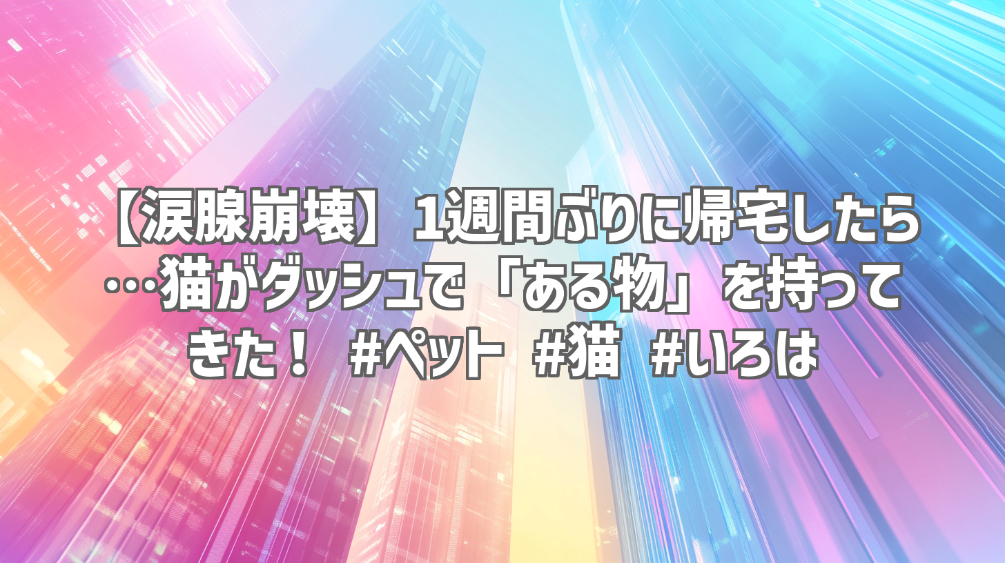 「【涙腺崩壊】1週間ぶりに帰宅したら…猫がダッシュで「ある物」を持ってきた! #ペット #猫 #いろは」は、たった11秒の動画ながら、猫の愛情深さに感動できる、心温まる作品です。仕事で疲れた時や、ちょっと心が寂しい時に見ると、きっと癒やされるはず。