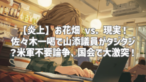 【炎上】お花畑 vs. 現実!佐々木一喝で山添議員がタジタジ?米軍不要論争、国会で大激突!