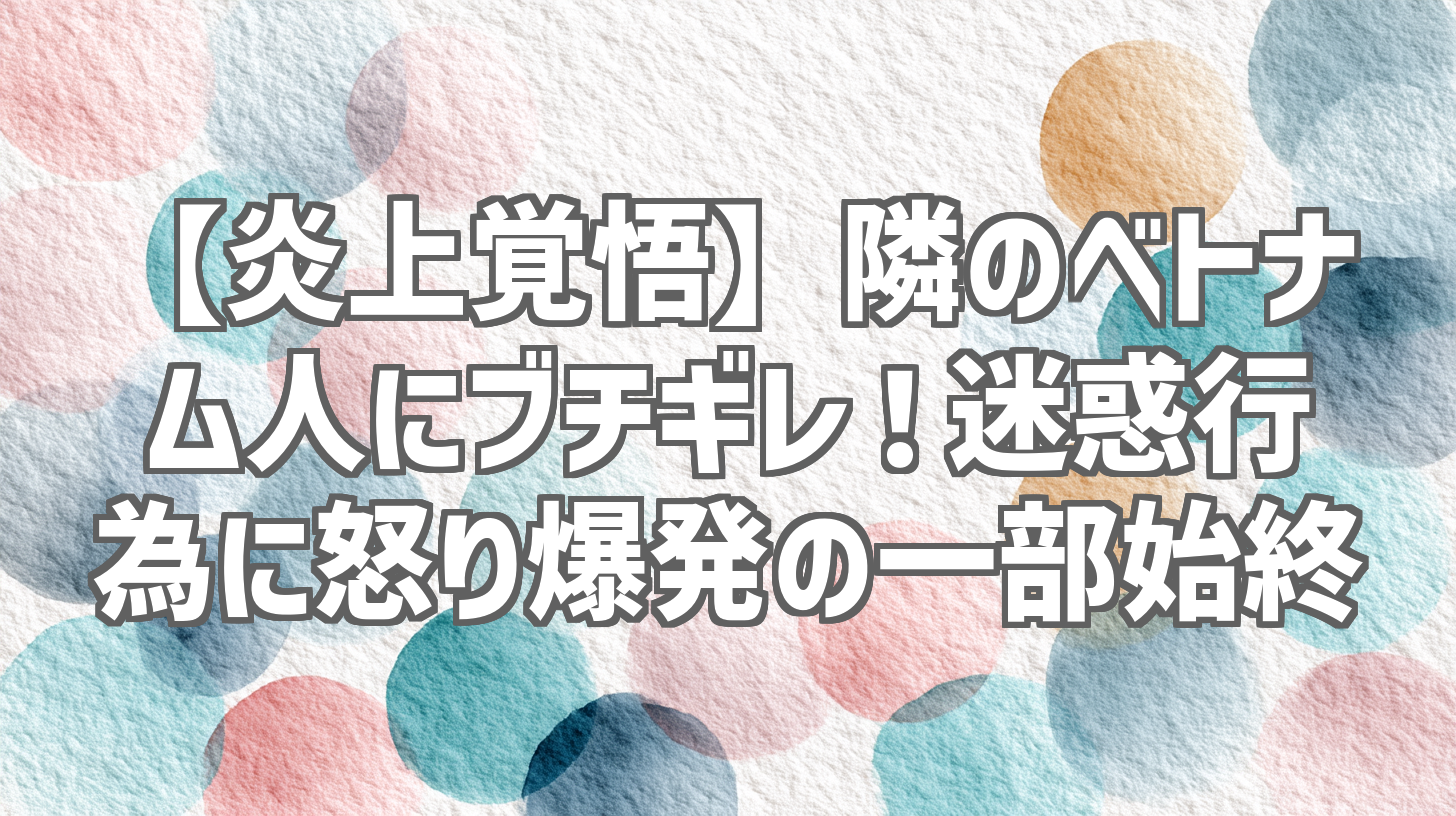 【炎上覚悟】隣のベトナム人にブチギレ!迷惑行為に怒り爆発の一部始終