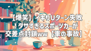 交差点の真ん中で完全に道を塞いでしまったスポーツカー。他の車からのクラクションが鳴り響き、ドライバーは焦っている様子。この「ダサすぎる」状況が、さらに笑いを誘います。まさに、イキった結果が招いた悲劇!