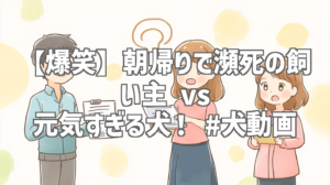 私も犬を飼っているので、この動画を見て、他人事ではないなと思いました(笑)。朝帰りではないですが、疲れて帰ってきた時に、愛犬に元気いっぱいに迎えられると、嬉しい反面、少しだけ「今は勘弁して…」と思ってしまうことがあります。この動画は、そんな私の気持ちを代弁してくれているようで、すごく共感できました。