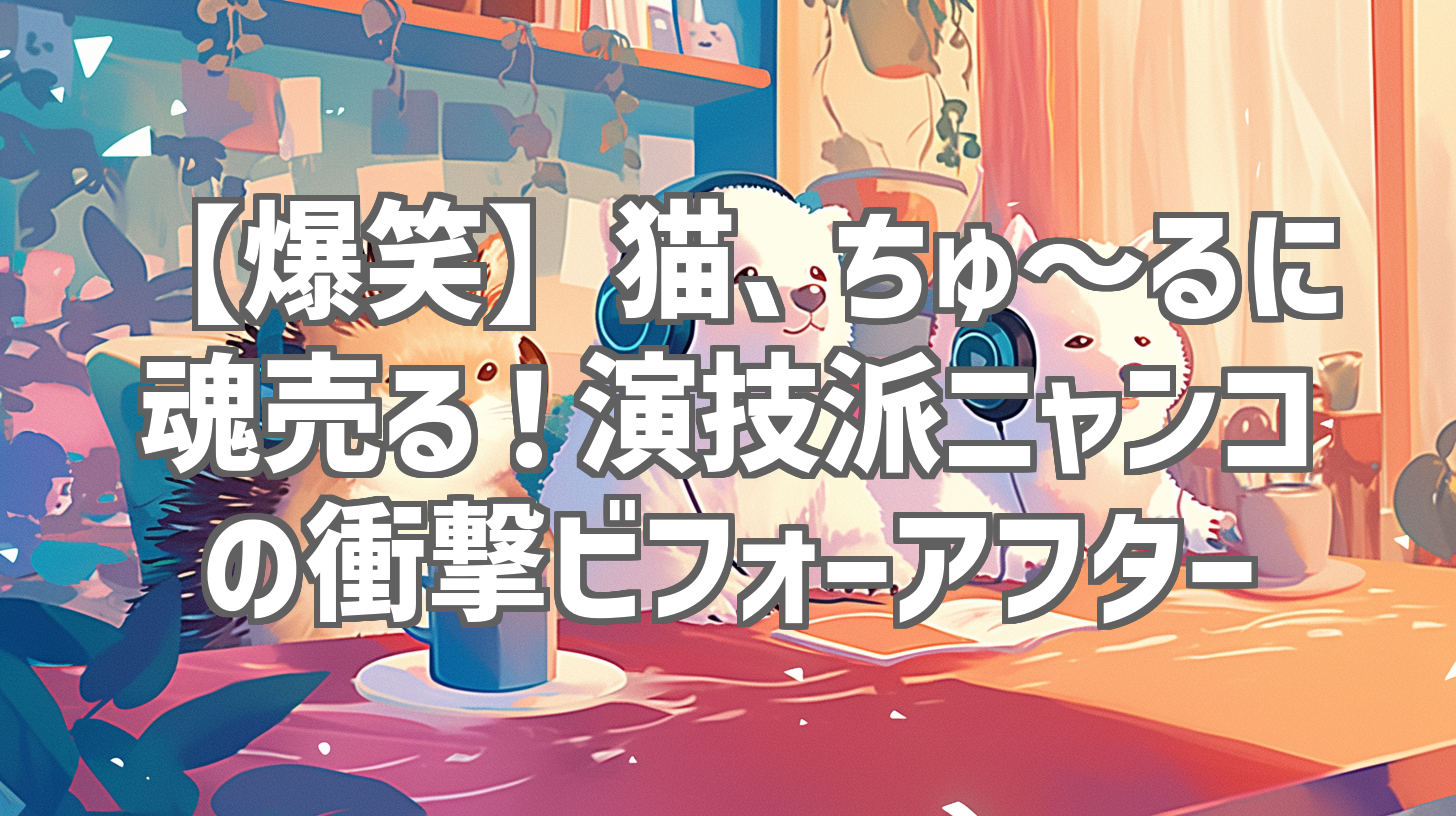 「ユーモアニャン」さんの「ちゅーるに屈した猫たちの演技」は、たった10秒の動画ですが、猫の魅力を凝縮した、爆笑必至の作品です。普段はクールな猫が、ちゅ〜るを前に見せるギャップに、きっとあなたもハマってしまうはず!ぜひ一度、動画をチェックして、猫たちの可愛さに癒やされてください!そして、気に入ったらチャンネル登録も忘れずに!きっと、あなたの毎日が、もっと楽しくなるはずです!