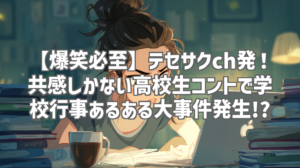 テセサクchの最新動画「大事件です😱 #コント #友達あるある #あるある #学校行事 #高校生 #コントチャンネル #お笑い #ドラマ #学校」が公開されて、もう完全にドハマりしてしまいました!タイトルからして「あるある」感が満載で、期待しかないですよね。特に、高校生時代の学校行事って、良い思い出もあれば、思い出すだけで顔から火が出そうな事件も起こりがち…。今回の動画は、まさにそんな「あるある」をギュッと凝縮した、爆笑必至のコントなんです!1分34秒という短い時間の中に、共感と笑いがこれでもかと詰め込まれていて、何度もリピートしてしまいました。今回は、そんなテセサクchの最新動画の魅力を、徹底的にレビューしていきたいと思います!