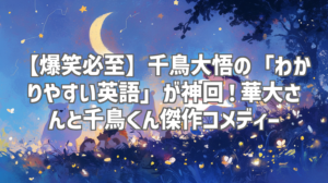 | 記事タイトル | 【爆笑必至】千鳥大悟の「わかりやすい英語」が神回!華大さんと千鳥くん傑作コメディー |