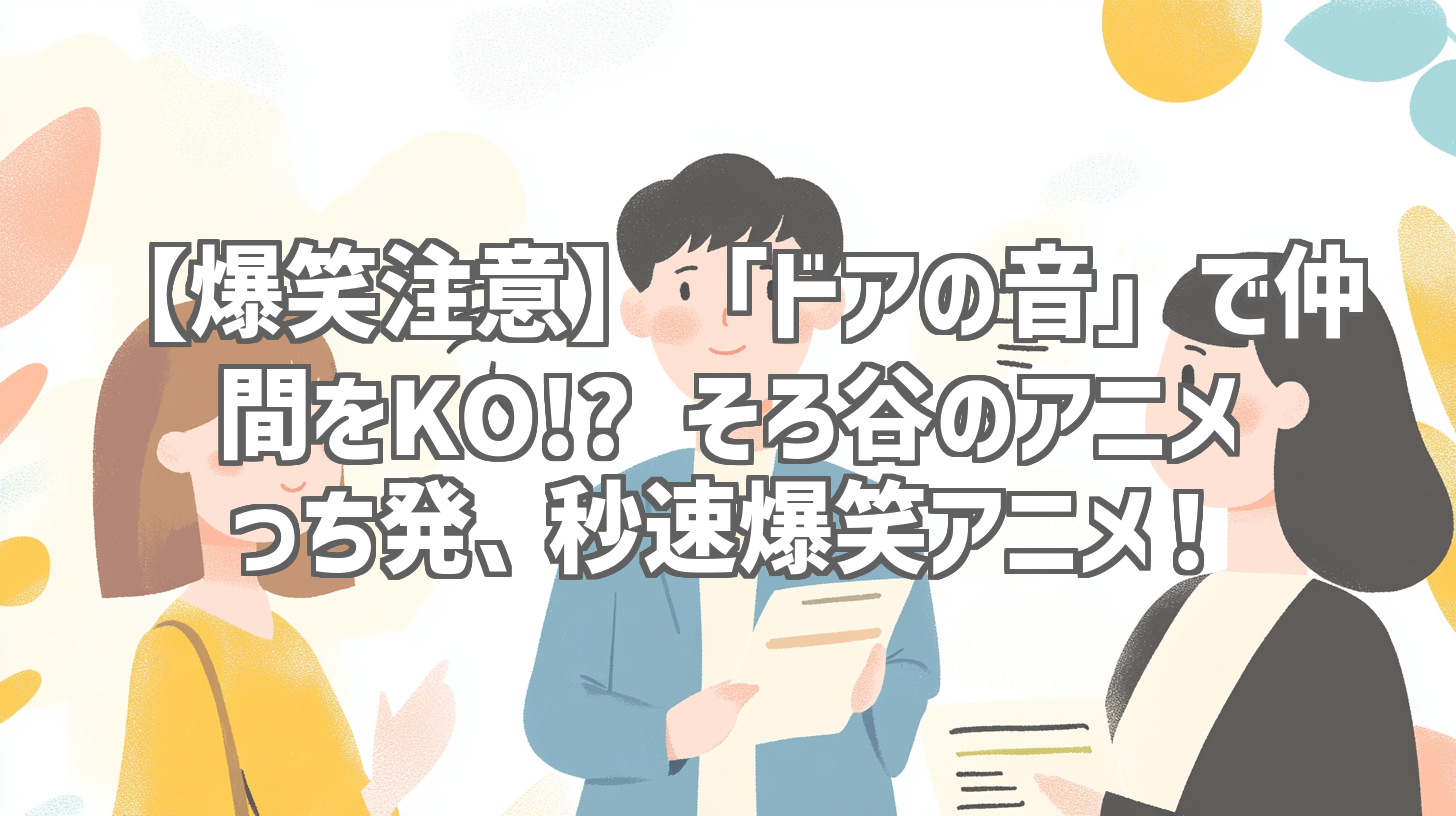 YouTubeを徘徊していたら、秒速で笑えるアニメを発見!それが「そろ谷のアニメっち」さんの「「ドアの音」を声で出してビビらせてくるヤツ【アニメ】 #shorts」です。たった25秒の中に、これでもかと笑いが凝縮されていて、まるでジェットコースターに乗ったような感覚!日常のちょっとしたイライラも、この動画を見れば吹っ飛ぶこと間違いなし!今回は、この中毒性MAXな動画を徹底レビューしちゃいます!笑い疲れて腹筋崩壊注意!