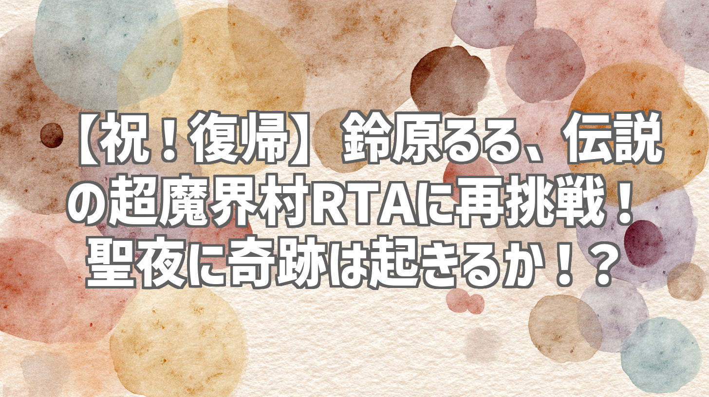 聖なる夜に、あの伝説が再び!VTuber界隈を騒がせた鈴原るるさんが、待望の復帰後初ゲーム配信として、高難易度アクションゲーム「超魔界村」RTAに挑戦しました!以前にも挑戦し、多くの視聴者を熱狂させた伝説のRTAに、再び挑む姿は、まさに聖夜の奇跡を期待させるものでした。今回は、その激闘の模様を、熱い想いとともに徹底レビューしていきます! あの頃の感動をもう一度!