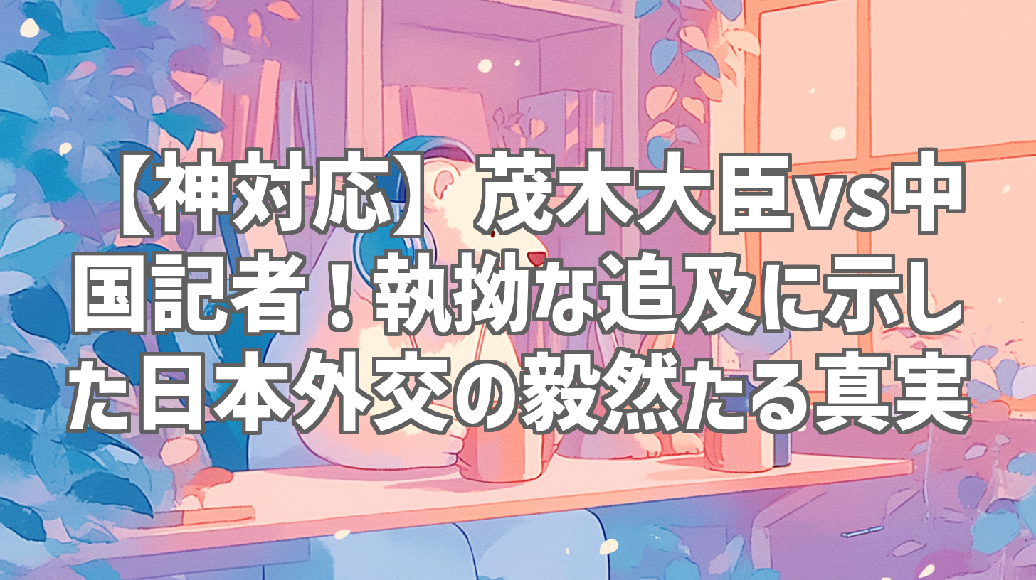 先日、YouTubeでとんでもない動画を見つけてしまいました。タイトルは「【神対応】※執拗中国記者に苛立ち…茂木大臣が中国記者からの執拗な撤回確認に毅然と対応【ペルソナノングラータ/高市発言】」。正直、サムネイルの時点でただならぬ雰囲気を醸し出していて、思わずクリックしてしまったんです。そして、実際に動画を視聴してみると、その内容の濃さと、茂木大臣のまさに「神対応」と呼ぶにふさわしい毅然とした態度に、私は終始釘付けになってしまいました。