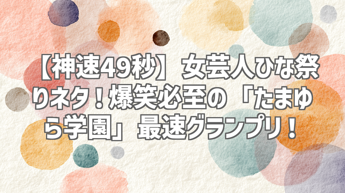 | 動画タイトル | 【たまゆら学園】テクニシャン#神速49秒 #お笑い #ひな祭り #女芸人 #美味しくして #最速 #まい賞 #おすすめバラエティ #49秒グランプリ #shorts |