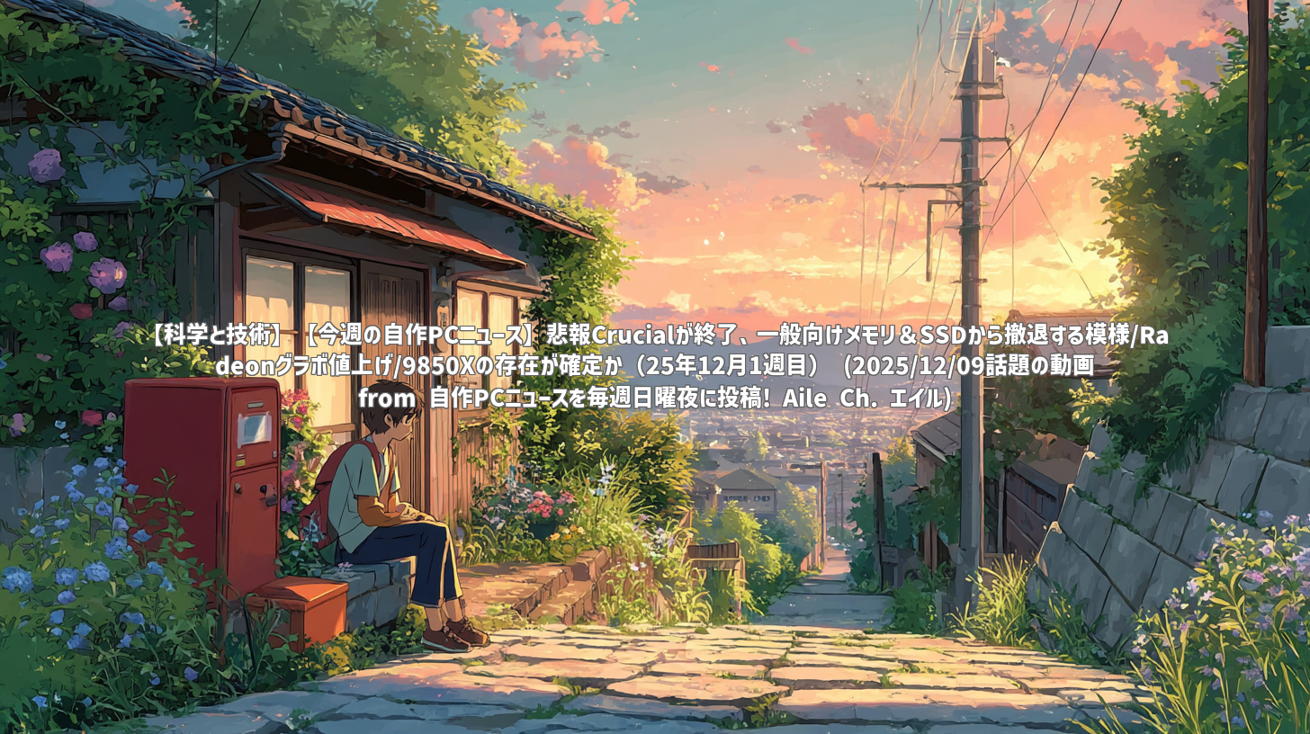 【科学と技術】【今週の自作PCニュース】悲報Crucialが終了、一般向けメモリ&SSDから撤退する模様/Radeonグラボ値上げ/9850Xの存在が確定か(25年12月1週目) (2025/12/09話題の動画 from 自作PCニュースを毎週日曜夜に投稿! Aile Ch. エイル)