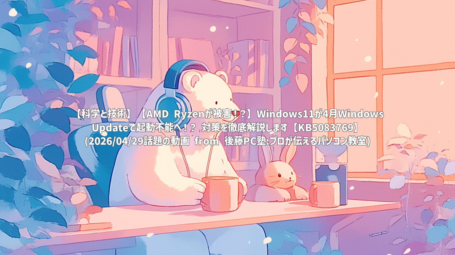 【科学と技術】【AMD Ryzenが被害!?】Windows11が4月Windows Updateで起動不能へ!? 対策を徹底解説します【KB5083769】 (2026/04/29話題の動画 from 後藤PC塾:プロが伝えるパソコン教室)
