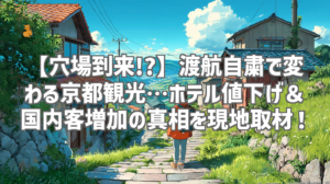 年末年始、どこに行こうか迷っているあなたに朗報です!なんと、あの観光都市・京都が今、かつてないほど行きやすくなっているんです。MBS NEWSが公開した「【京都すいている!?】中国“渡航自粛”から約1か月 気軽に行ける京都が戻ってきた?ホテルも値下がり?現地取材すると「キャンセルは相次いでいるが、国内や他国の客が増えた」(2025年12月19日)」という動画では、渡航自粛の影響で観光客が減少し、ホテルが値下げされている現状が紹介されています。これは、私たち日本人にとって、ゆっくりと京都を満喫できる絶好のチャンス!早速、動画の内容をチェックして、お得な京都旅行の計画を立てましょう!