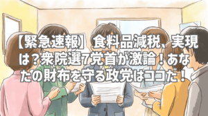 【緊急速報】食料品減税、実現は?衆院選7党首が激論!あなたの財布を守る政党はココだ!