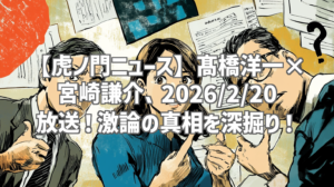 2026年2月20日に公開された「真相深入り! 虎ノ門ニュース」の動画は、髙橋洋一さんと宮崎謙介さんという、ある意味異色の組み合わせによる激論が繰り広げられ、公開から間もなく30万回再生を超える注目を集めています。今回は、その白熱した議論の内容を、実際に視聴した私が徹底的に深掘りレビュー!SWELLの装飾機能をフル活用して、動画の見どころやポイントを分かりやすく解説します。見逃した方はもちろん、もう一度内容を確認したい方も、ぜひこの記事を参考にしてください!
