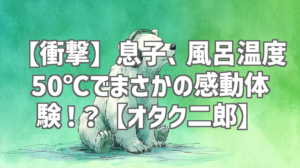 動画は、オタク二郎さんが一人で風呂に入っている息子さんの様子を見に行くと、風呂の温度がなんと50℃に設定されていることに気づくシーンから始まります。普通なら「アツっ!」ってなるはずなのに、息子さんは平然と入浴しているんです。一体なぜ?